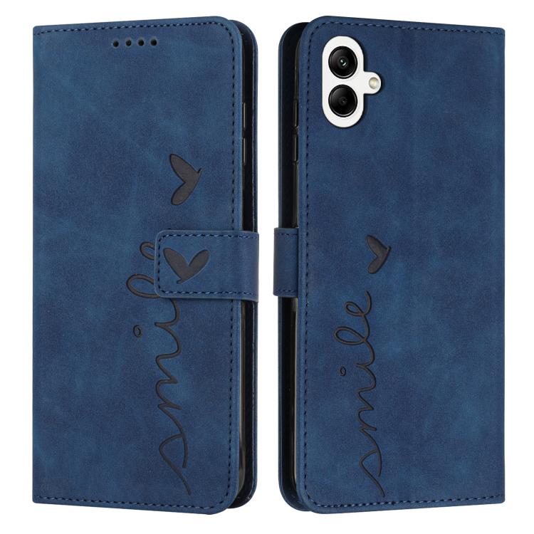 Funda de piel con diseño de corazón en relieve y cordón largo para Samsung Galaxy A07 4G (azul)