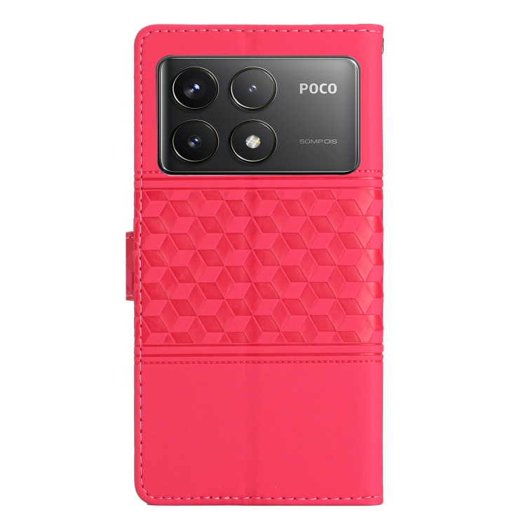 Funda de Piel con Efecto Piel En Relieve de Diamante para Xiaomi Poco F6 Pro (Roja)