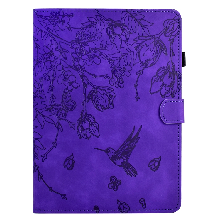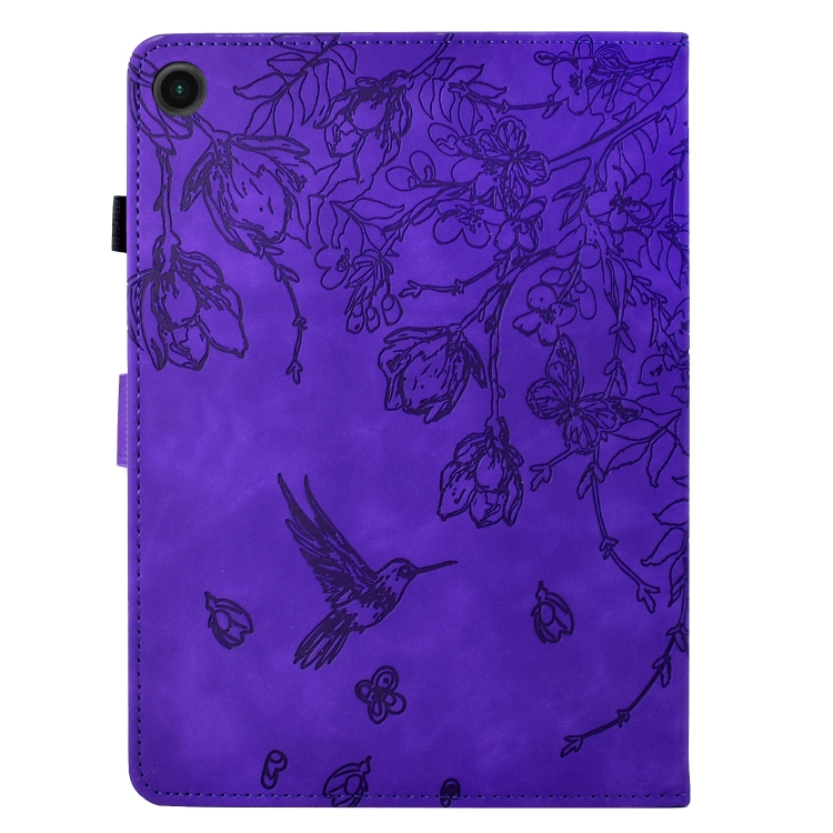 Funda de Piel para Tablet Samsung Galaxy Tab A9 con Estampado de Flores y Pájaros (Morado)