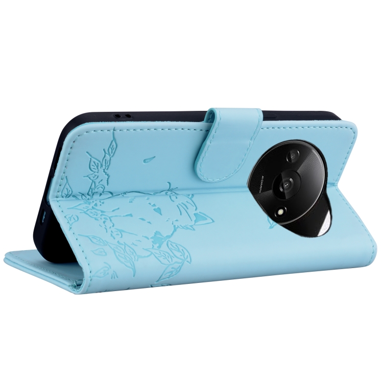 Funda de Piel con Estampado de Gato para Redmi A3 (Azul Cielo)
