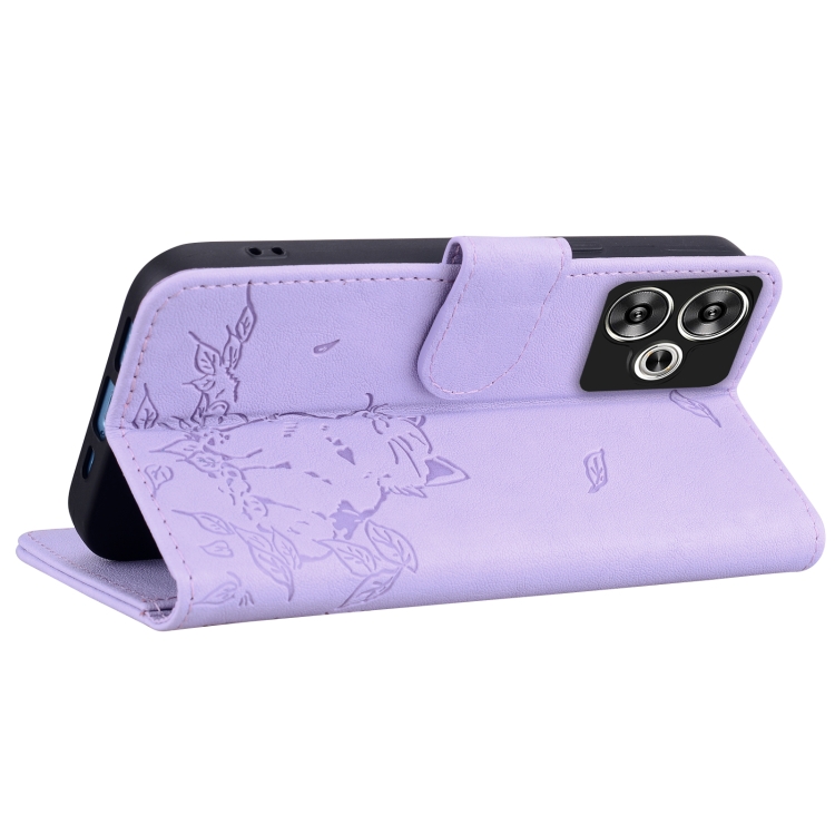 Funda de Piel con Estampado de Gato para Xiaomi Poco F6 (Morado)