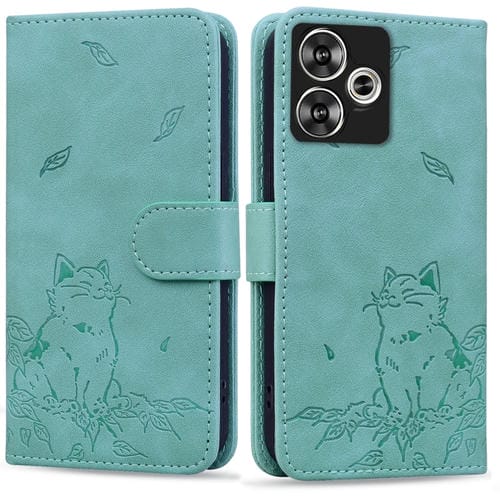 Funda de Piel con Estampado de Gato para Xiaomi Poco F6 (Verde)