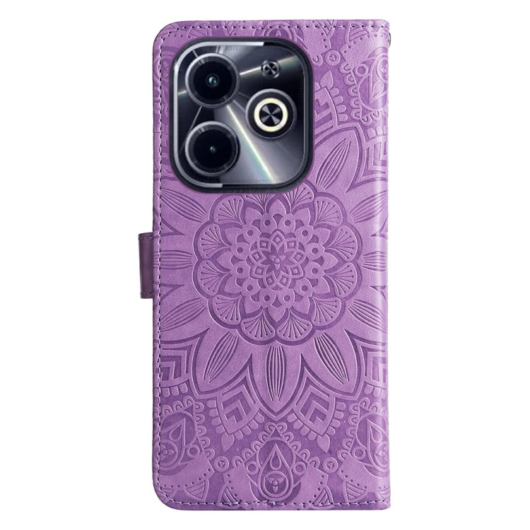 Funda de Piel con Estampado de Girasoles en Relieve para Infinix Hot 40I (Morado)