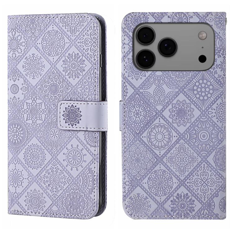 Funda de piel con estampado étnico en relieve para iPhone 17 Pro Max (morado)