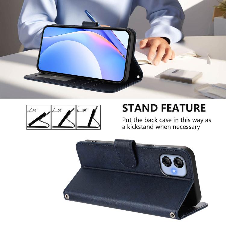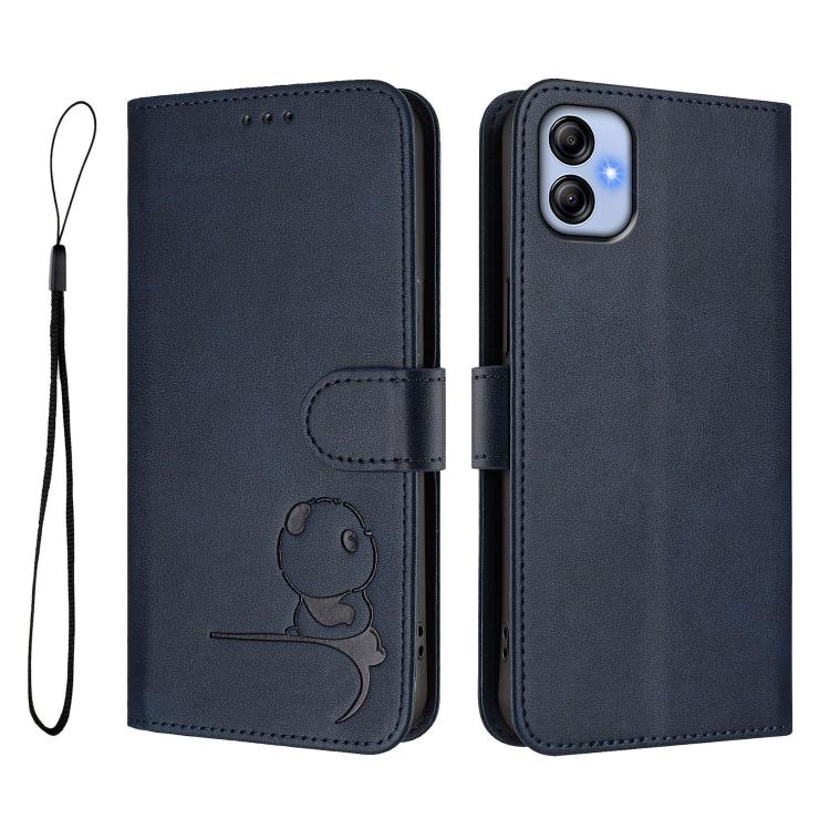 Funda de piel con estampado RFID y cordón para Samsung Galaxy A04e/F04/M04 (azul)