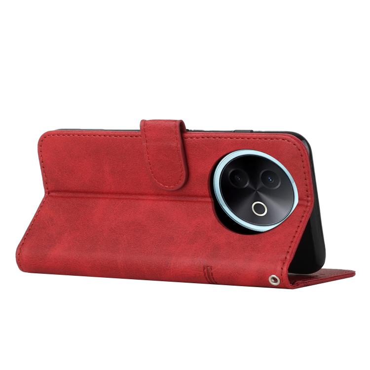 Funda de Piel con Hebilla y Textura de Becerro con Costuras Globales para Vivo Y39 5G (Roja)