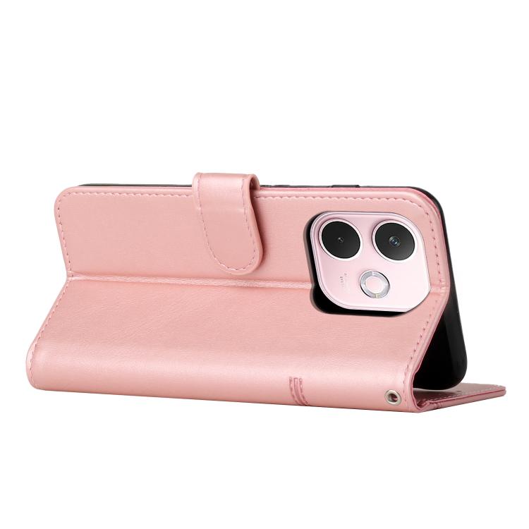 Funda de Piel con Hebilla y Textura de Becerro para Oppo A5 Pro 5G (Oro Rosa)