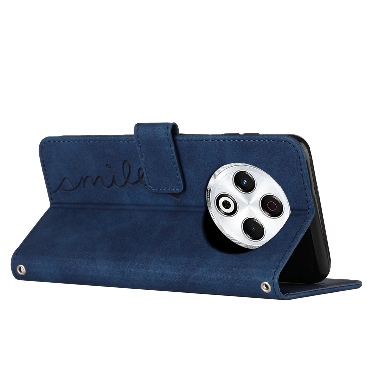 Funda de Piel con Relieve de Corazón y Cordón Largo para Tecno Spark 30 4G (Azul)