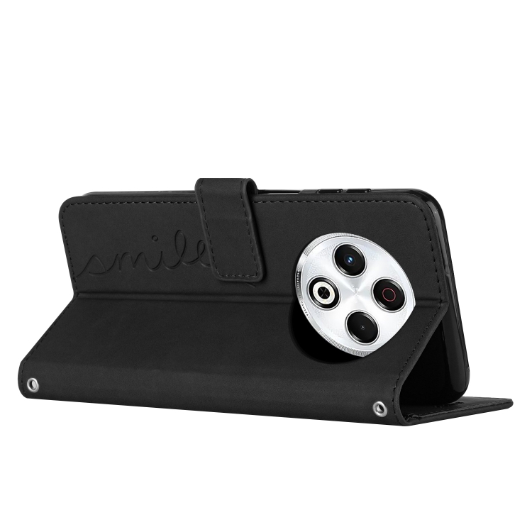 Funda de Piel para Tecno Spark 30 4G con Relieve de Corazón y Cordón Largo (Negro)