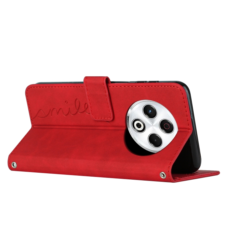 Funda de Piel con Relieve de Corazón y Cordón Largo para Tecno Spark 30 4G (Rojo)