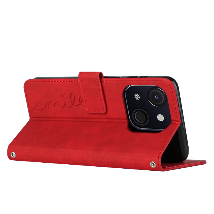 Funda de Piel con Relieve de Corazón y Cordón Largo para Itel A50C (Rojo)
