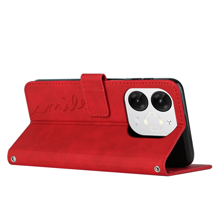 Funda de Piel con Relieve de Corazón y Cordón Largo para Teléfono Itel A80 (Rojo)