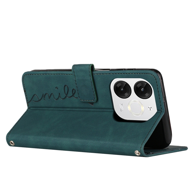Funda de Piel con Relieve de Corazón y Cordón Largo para Teléfono Itel A80 (Verde)