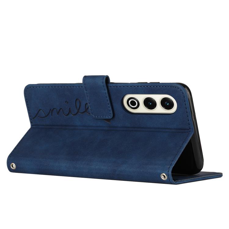 Funda de Piel con Relieve de Corazón y Cordón Largo para Teléfono Itel S25 (Azul)