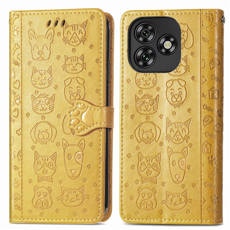 Funda de Piel con Relieve de Gato y Perro para Oukitel C53 (Amarilla)