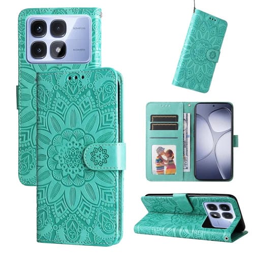 Funda de Piel con Relieve de Girasol para Redmi K70 Ultra (Verde)