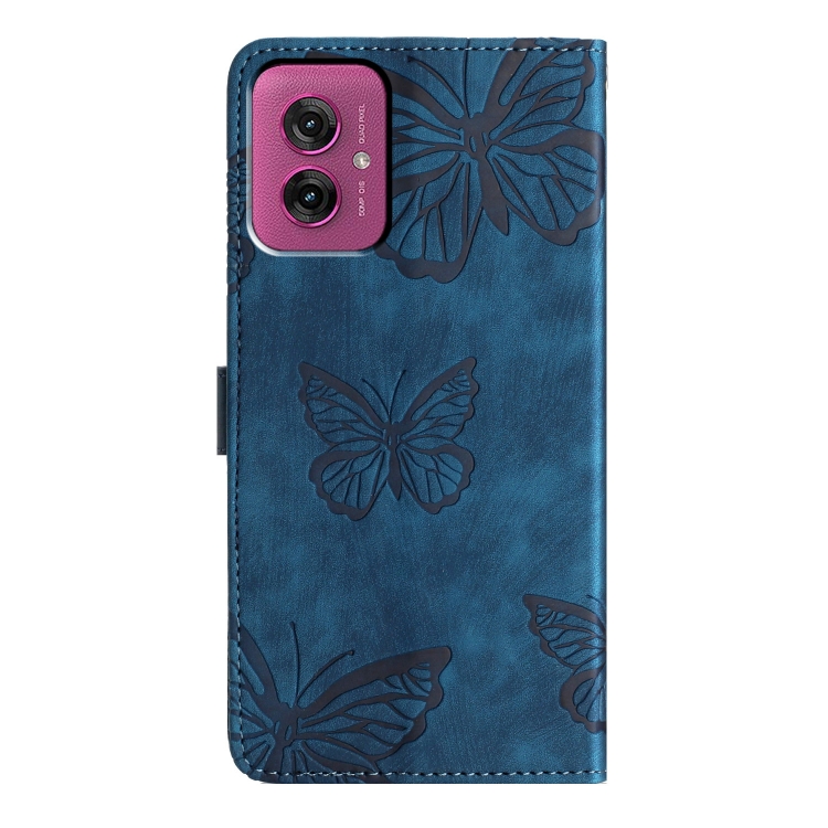 Funda de Piel con Relieve de Mariposa para Motorola Moto G55 (Azul)