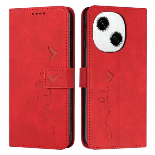 Funda de Piel con Relieve Corazón para Tecno Spark Go 1 (Rojo)