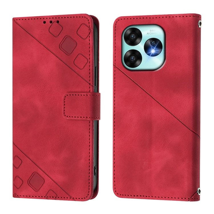 Funda de Piel con Relieve para Teléfono Umidigi A15 A15C A15T (Roja)