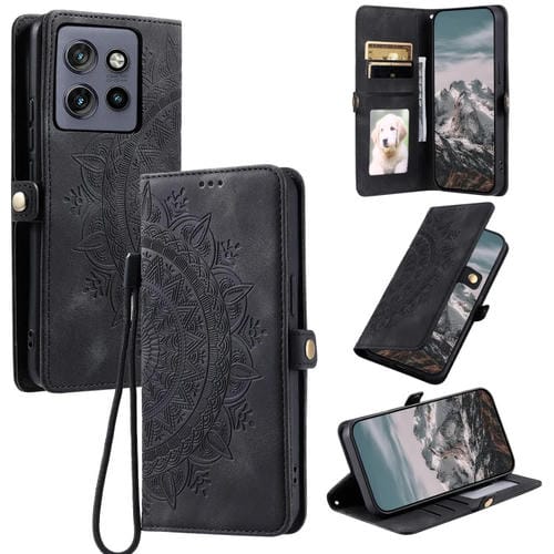 Funda de Piel con Relieve Totem para Motorola Edge 50 Neo (Negra)
