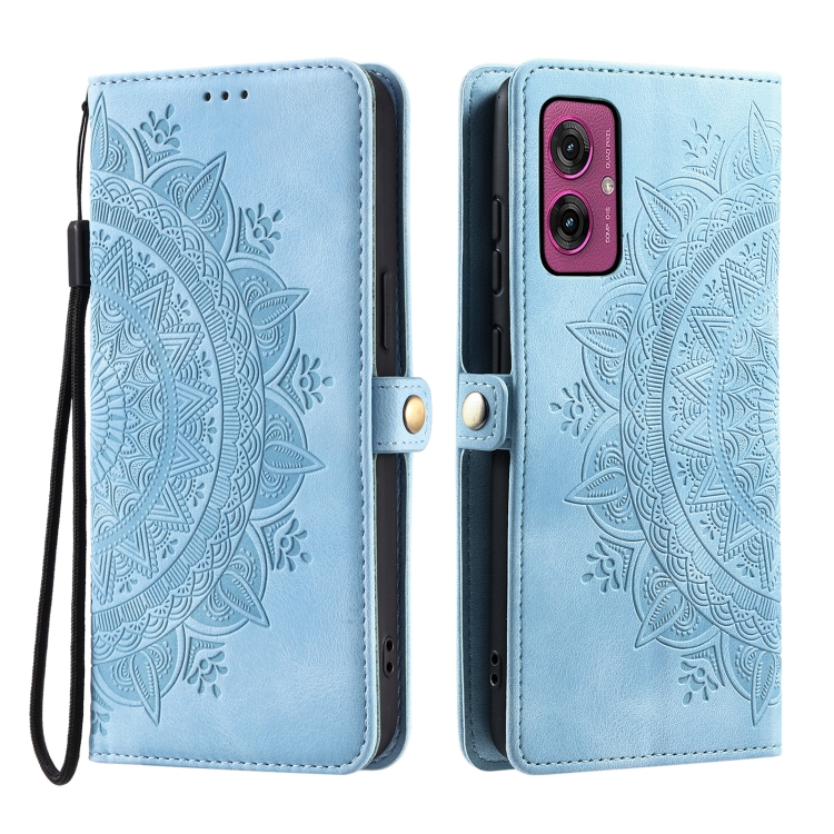 Funda de Piel con Relieve Totem para Motorola Moto G55 (Azul)