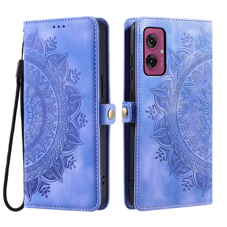 Funda de Piel con Relieve Totem para Motorola Moto G55 (Morado)