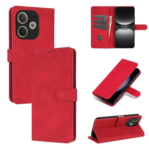 Funda de Piel con Tapa Azns con Textura de Becerro para Oppo A5 Energy / A5 Pro 5G (Roja)