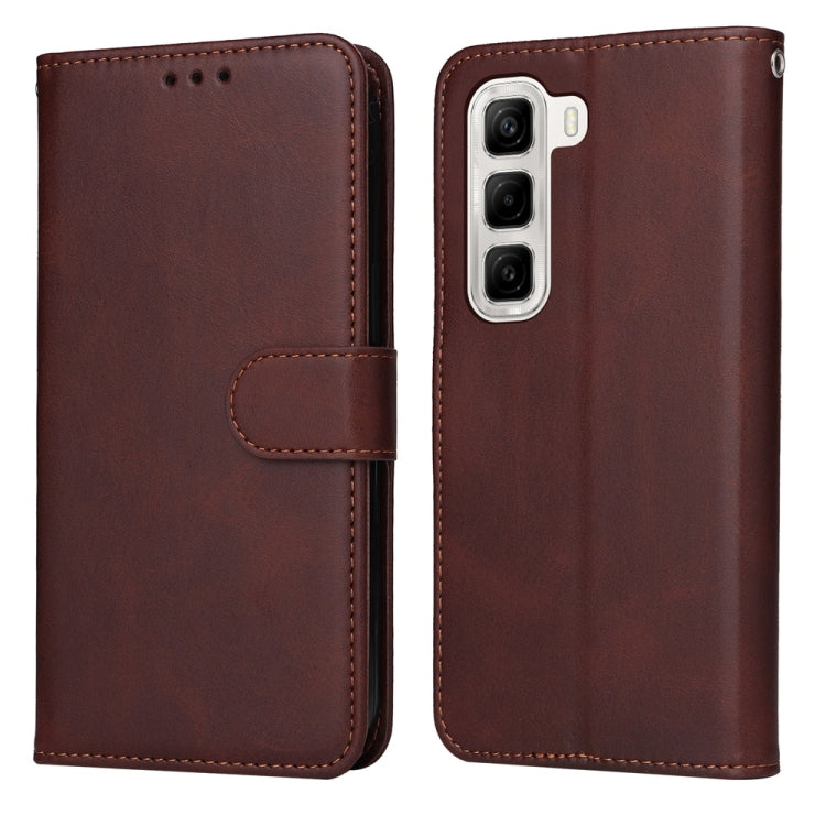 Funda de Piel con Tapa Textura Clásica Becerro para Infinix Hot 50 4G (Marrón)