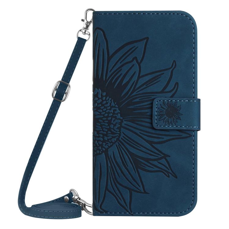 Funda de piel con tapa y cordón para TCL 60 SE / 605, con diseño de girasol en relieve y tacto suave (azul tinta)