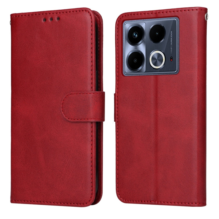 Funda de Piel con Tapa y Textura Clásica de Becerro para Infinix Note 40 4G (Roja)