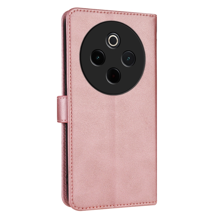 Funda de Piel con Tapa Azns con Textura de Becerro para Vivo Y300 Pro (Oro Rosa)