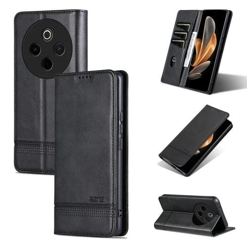 Funda Magnética Azns de Piel con Textura de Becerro para Vivo Y300 Pro (Negra)