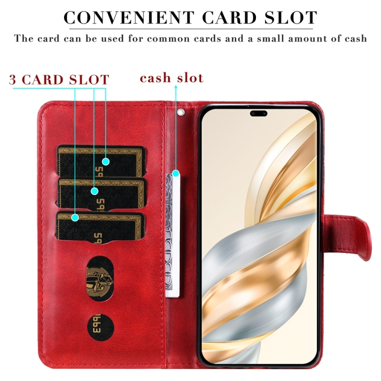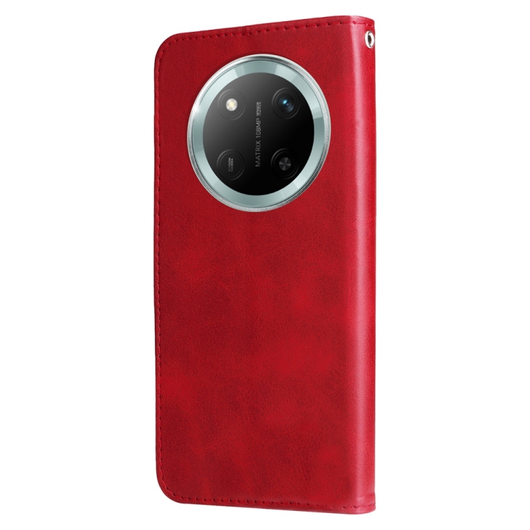 Funda de Piel Textura de Becerro con Cremallera para Honor X9C y Magic7 Lite (Rojo)