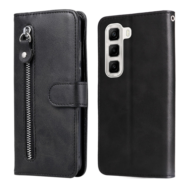 Funda de Piel con Textura de Becerro y Cremallera para Infinix Hot 50 4G (Negra)