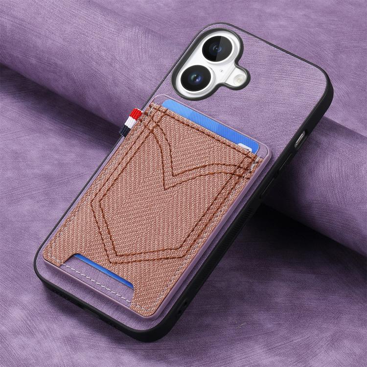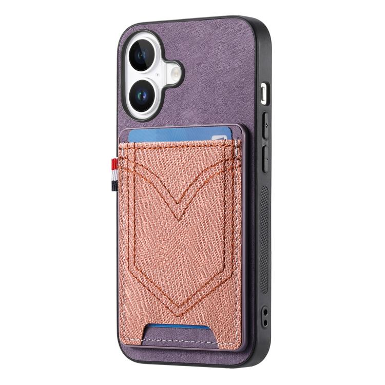 Funda de piel con textura vaquera para iPhone 17 con ranura para tarjetas (morado)