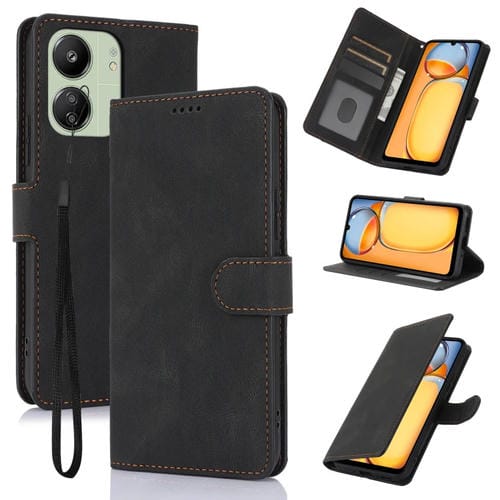Funda de Piel de Becerro con Textura de Piel de Becerro para Xiaomi Poco C65 Global Fantasy (Negra)