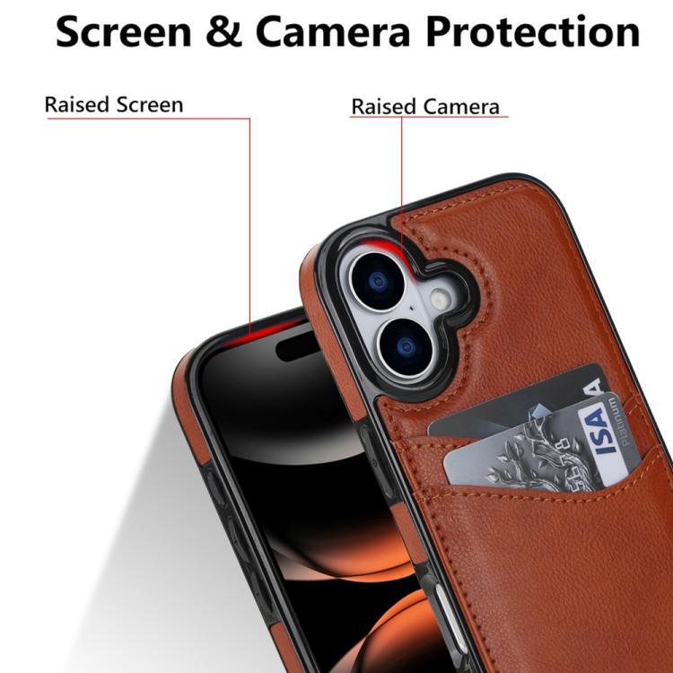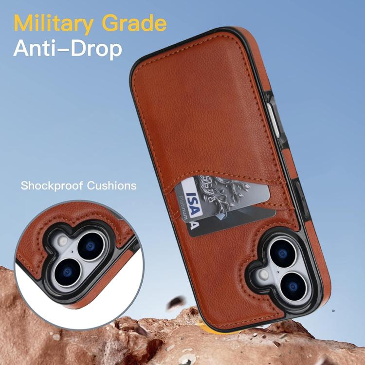 Funda de piel de lichi con ranuras para tarjetas para iPhone 17 (marrón)