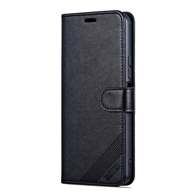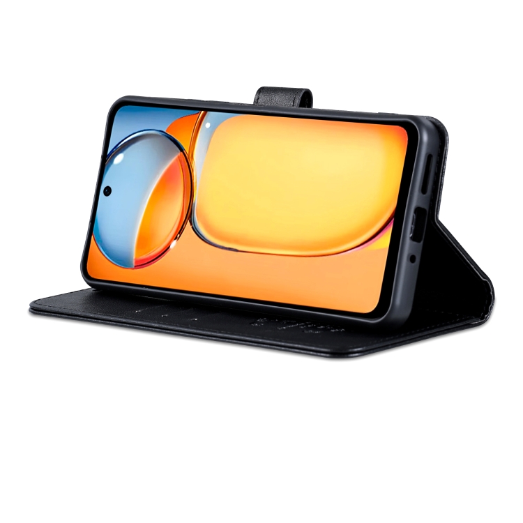 Funda de Piel de Oveja con Tapa para Honor X60 con Textura Azns (Negra)