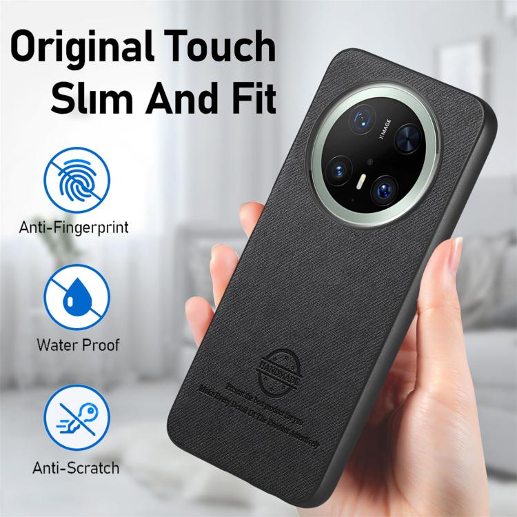 Funda de Piel de Sarga con Parte Trasera de Cuero para Huawei Mate 70 (Negra)