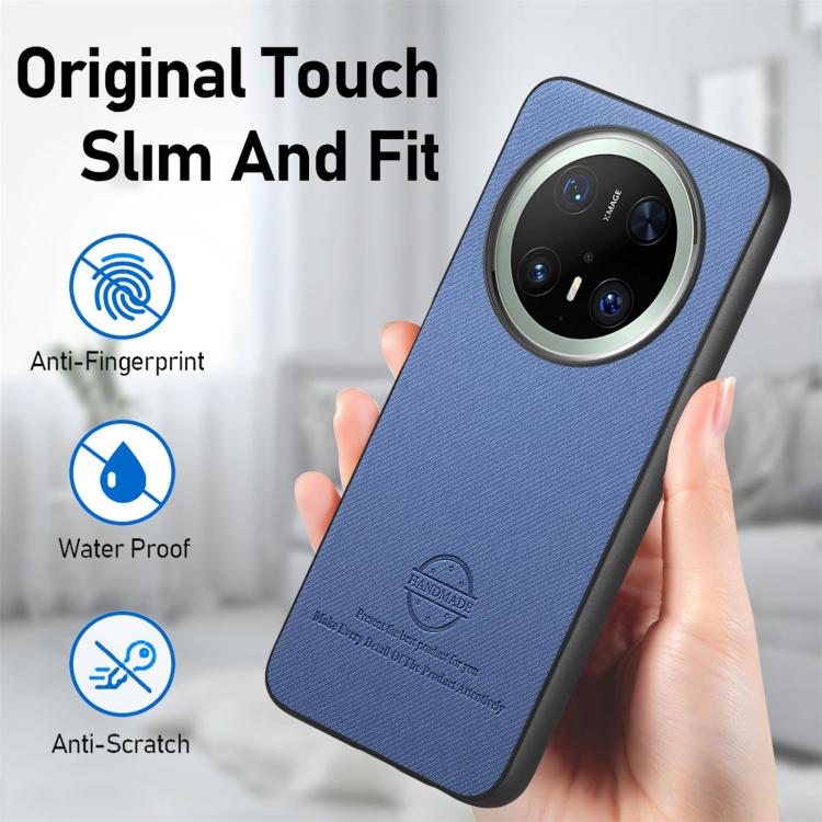 Funda de Piel de Sarga con Parte Trasera de Cuero para Huawei Mate 70 Pro+ (Azul)