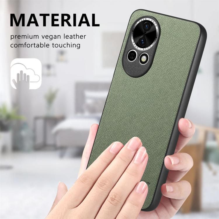 Funda de Piel de Sarga con Parte Trasera de Cuero para Huawei Nova 13 (Verde)