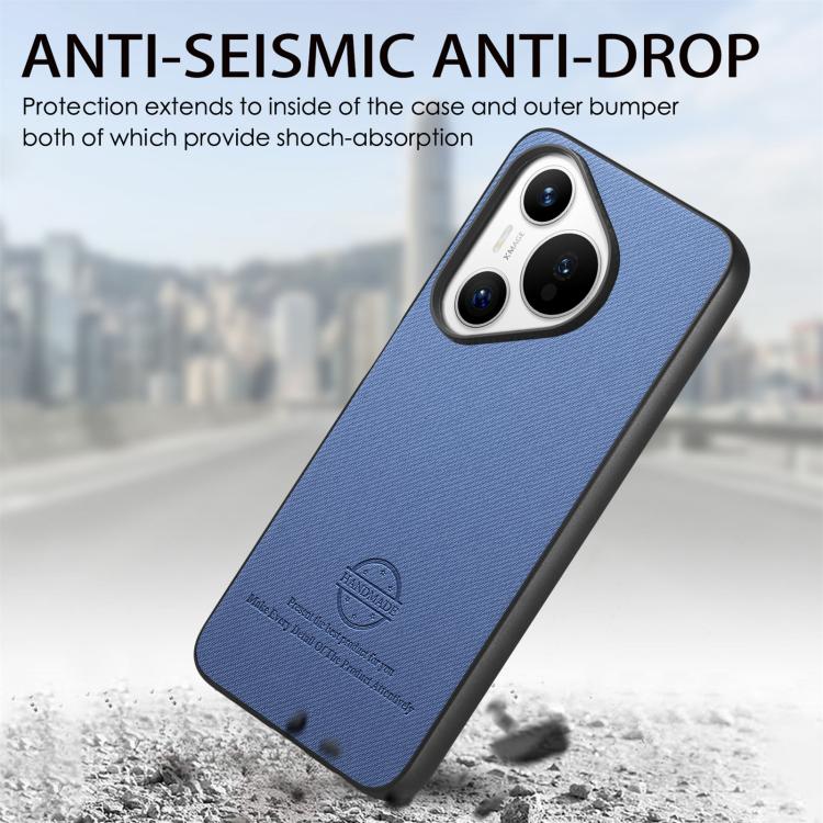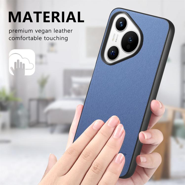 Funda Piel de Sarga con Parte Trasera de Cuero para Huawei Pura 70 Pro (Azul)