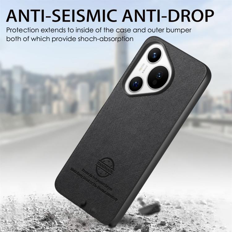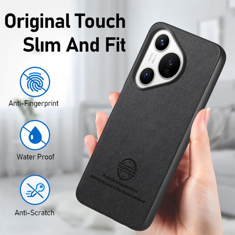 Funda Piel de Sarga con Parte Trasera de Cuero para Huawei Pura 70 Pro+ (Negra)