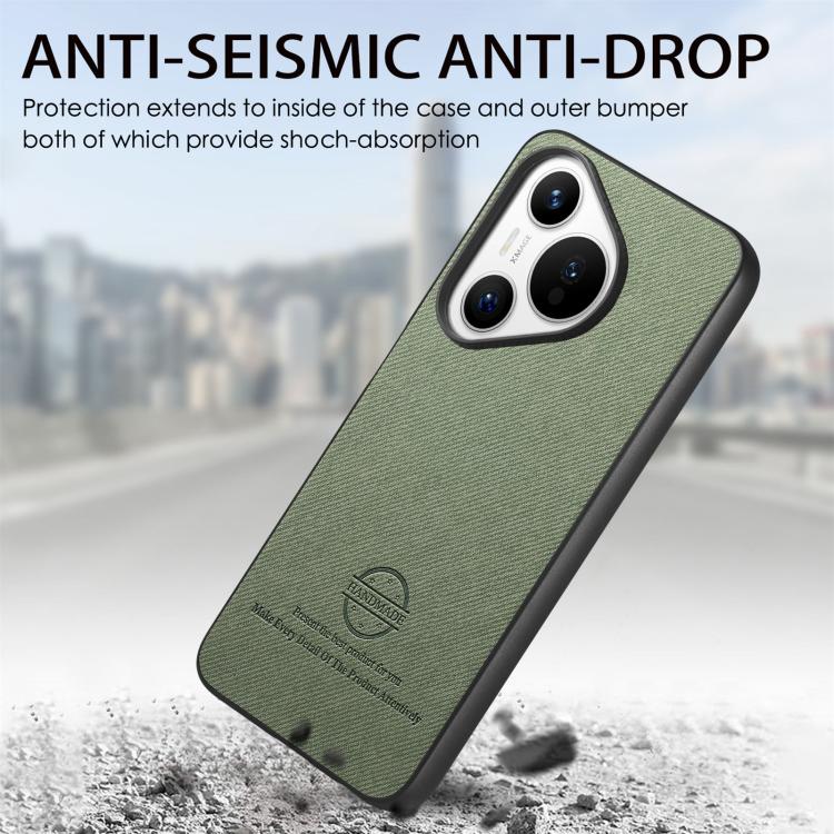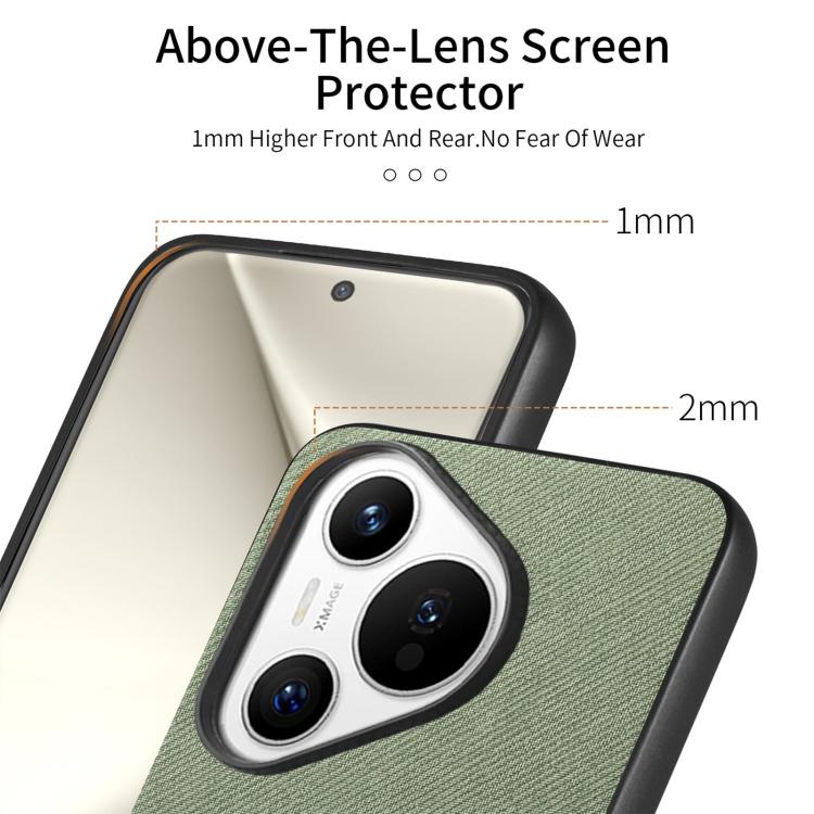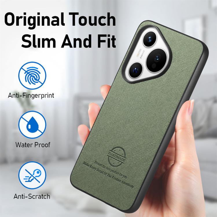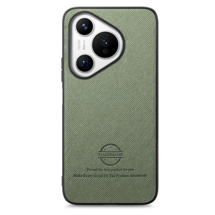 Funda de Piel de Sarga con Parte Trasera de Cuero para Huawei Pura 70 Pro (Verde)