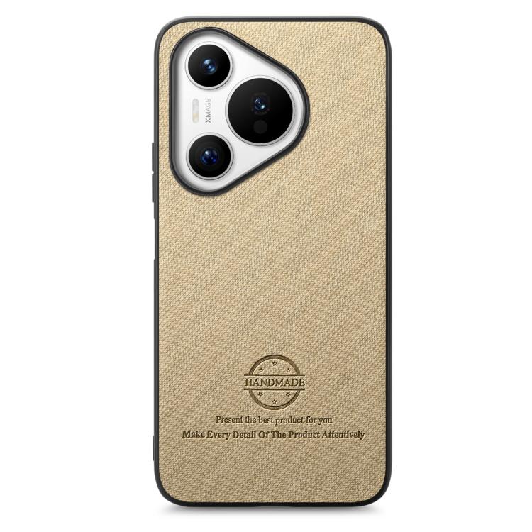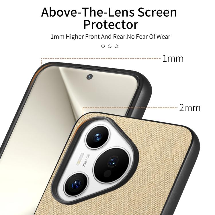 Funda de Piel de Sarga con Parte Trasera de Cuero para Huawei Pura 70 Ultra (Caqui)