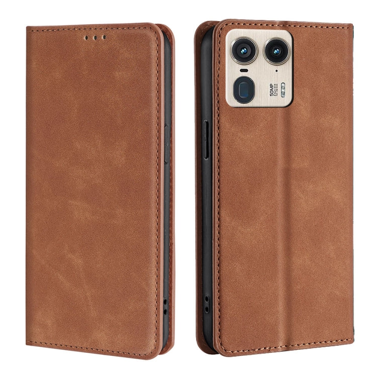 Funda Magnética de Piel con Tacto para Motorola Edge 50 Ultra (Marrón Claro)