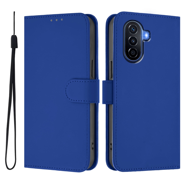 Funda de Piel Sintética con Cordón para Huawei Enjoy 50 4G y Nova Y70 Plus (Azul Oscuro)