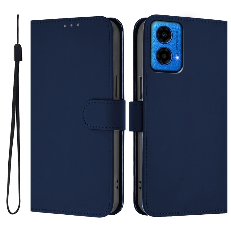 Funda de Piel Sintética con Cordón para Motorola Moto G45 5G y G34 5G (Azul Marino)
