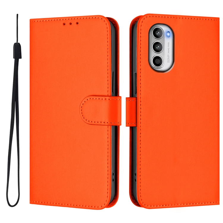 Funda de Piel Sintética con Cordón para Motorola Moto G52 4G y G82 5G (Naranja)