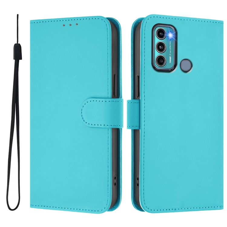 Funda de Piel Sintética con Cordón para Motorola Moto G60/G40 Fusion (Azul Lago)